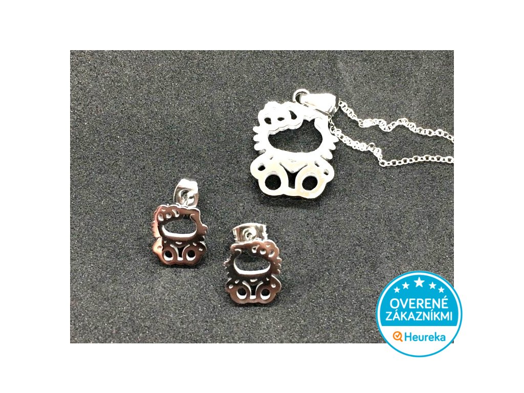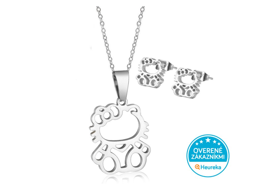Nádherná súprava náušníc a prívesku na retiazke v tvare obľúbenej mačky Kitty z masívnej leštenej chirurgickej ocele. Veľmi krásny darček, perfektný na slávnostné príležitosti.