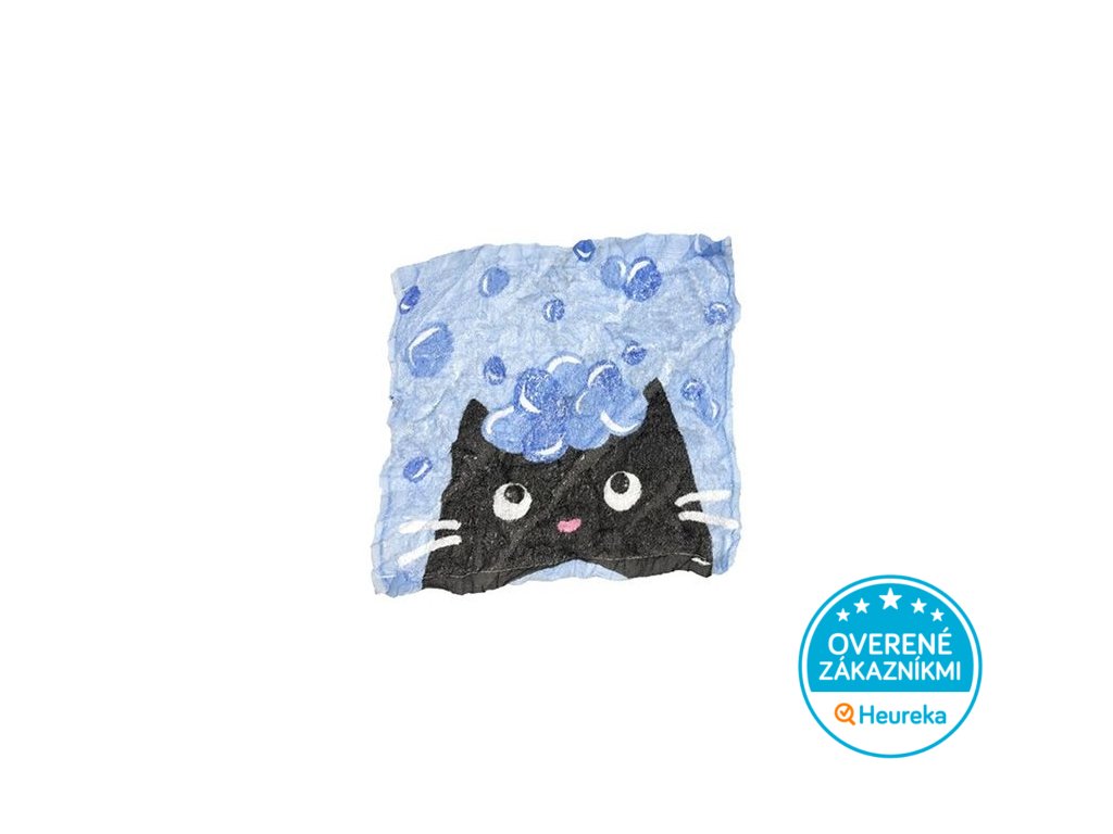 Mačacia vychytávka na cesty, ktorá sa zmestí do vrecka. Uterák s čiernymi mačičkami, zlisovaný do malej tabletky, ktorý sa po rozbalení sám "nafúkne" do potrebnej veľkosti. Ideálne aj do kabelky "pre strýčka príhodu".