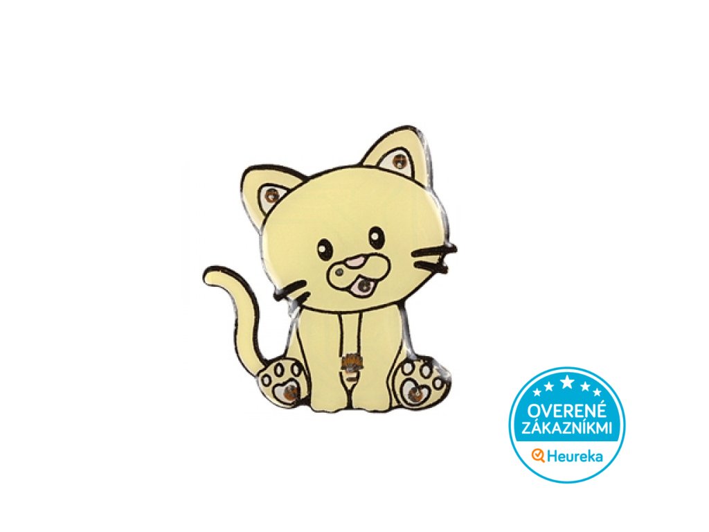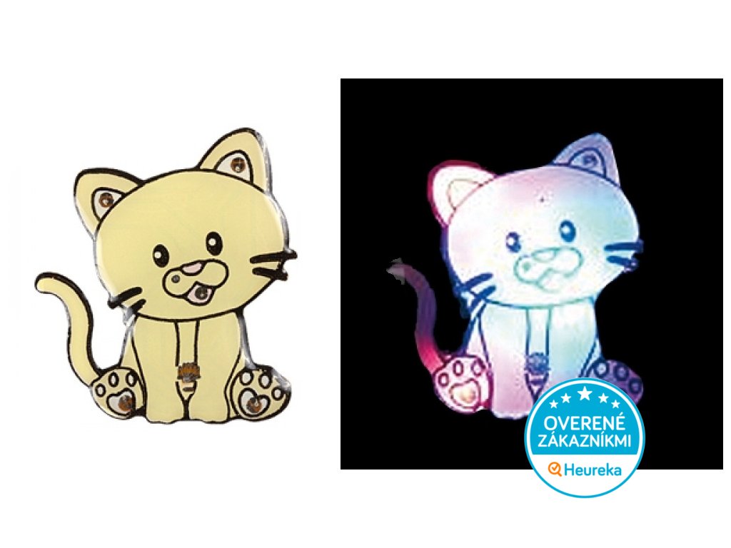 Originálna mačacia brošňa - špendlík v tvare sediacej mačičky, s integrovaným LED svetlom (možno zapnúť aj vypnúť). Parádne tiež ako bezpečnostný prvok napríklad na batoh.