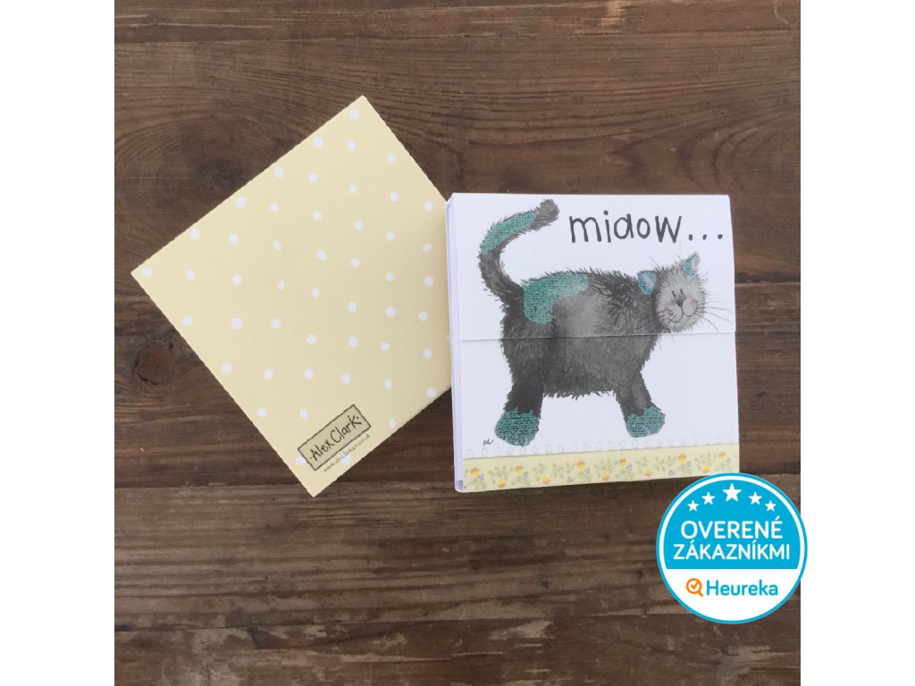 Praktický trhací bloček so stovkou lístkov v doskách s šedivou mačičkou, trblietavým zdobením, so zatváraním na magnet. Perfektná mačacia vychytávka v dizajne Alex Clark.