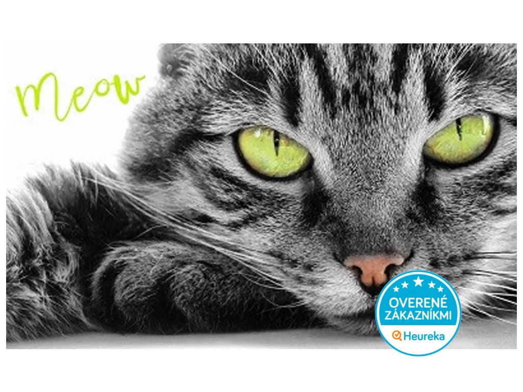 Hebký savý uterák s pruhovanou whiskas mačičkou so zelenými očami sa skvele hodí na ruky do kúpeľne alebo na cesty. Rozmer 30 x 50 cm.