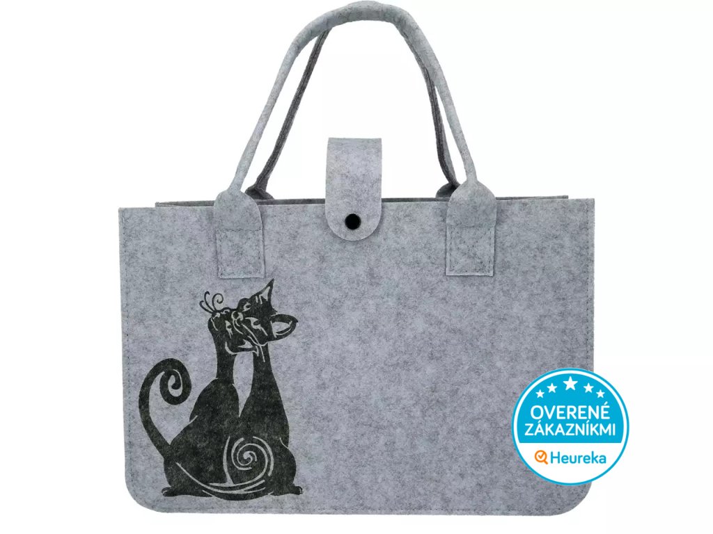 Originálna, veľká a krásne spracovaná kabela cez rameno so zamilovanými mačkami. Užijete ju ako veľkú kabelku, tašku na cesty aj ako priestrannú nákupnú tašku. Z trendy pevného ekologického filcu, so zaisťovacím pásikom zapínacím na cvok.