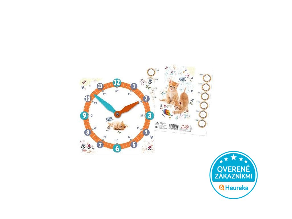 Papierové hodiny na učenie malých milovníkov mačičiek. S týmto mačiatkom sa hodiny naučia raz dva! Hodiny obsahujú čísla od 1 po 12 a delenie po minútach, ručičky sú pohyblivé a na zadnú stranu si deti môžu kresliť čas do prázdnych hodín.