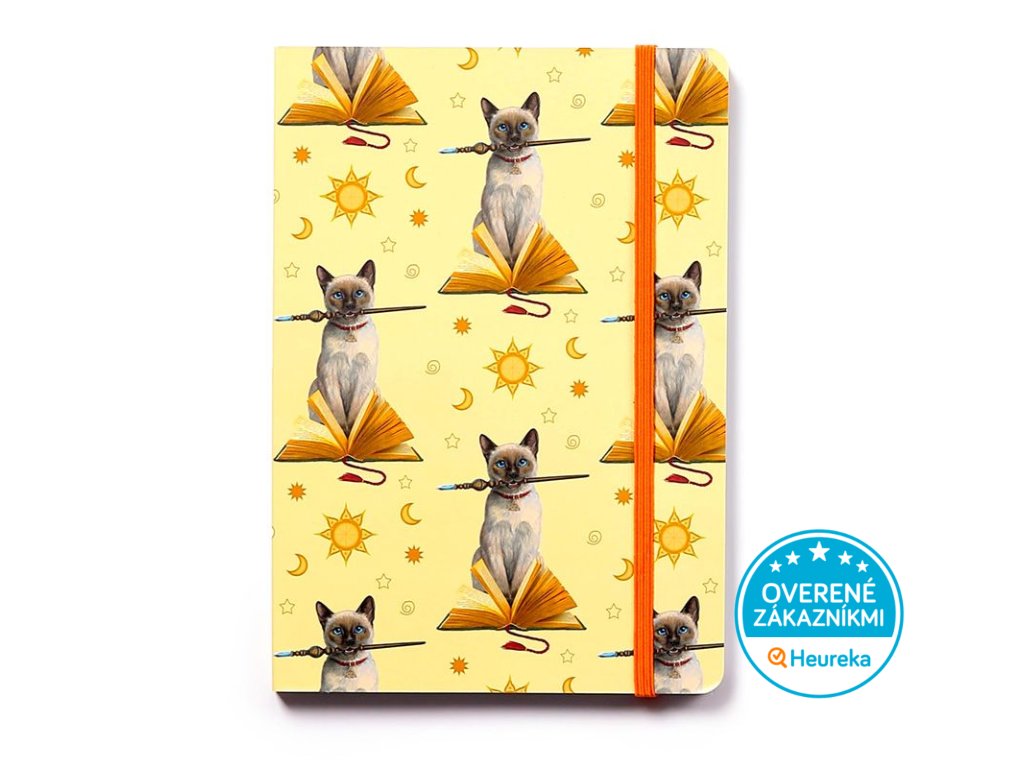 Krásny linajkový blok s gumičkou proti otvoreniu s mačkou s kúzelníckou paličkou od vychytavky-do-autarky Lisy Parker. Táto magická mačička dohliadne na všetky vaše nápady a zápisky - perfektná ako denník alebo napríklad kniha receptov. Formát A5.