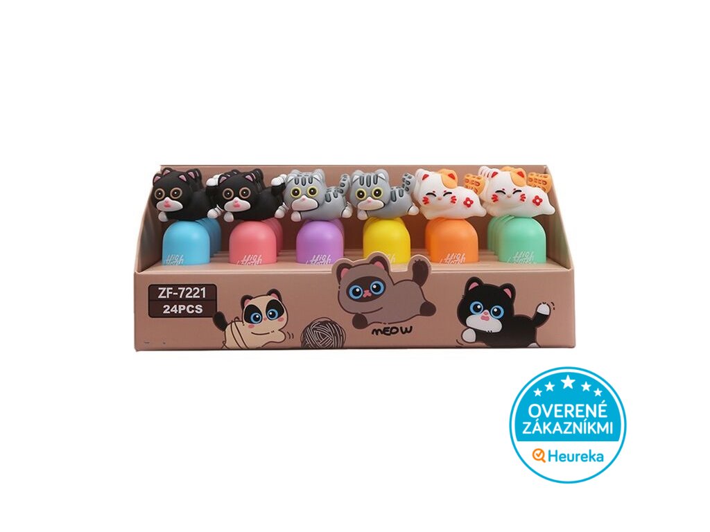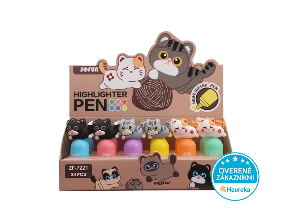 Zvýrazňovacia fixa s mačičkou v jednej zo 6 farieb - na poznámky, výpisky, alebo len tak pre radosť. Milá mačičiareň pre kancelársku mačku alebo mačaciu školáčku.